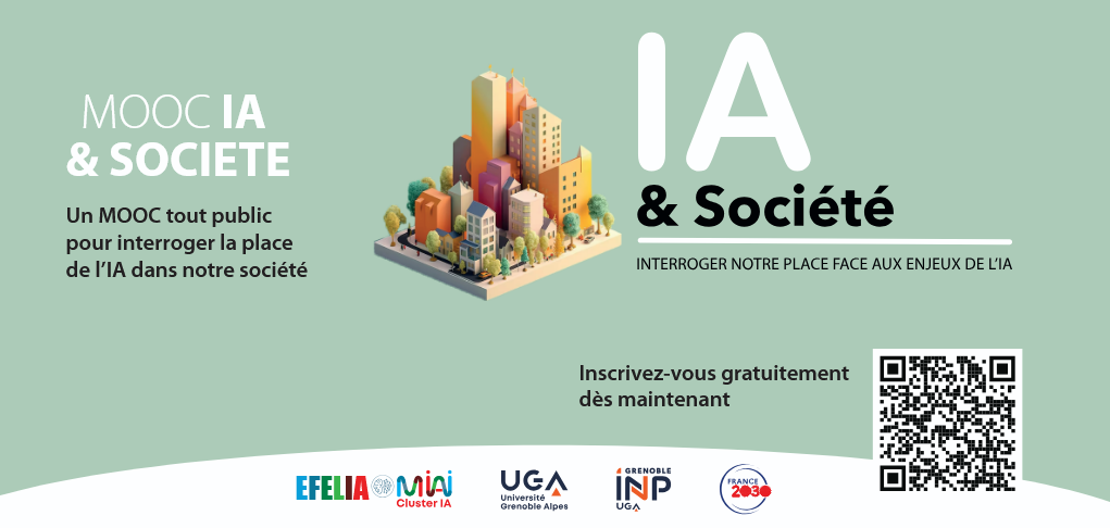 Pour mieux comprendre les enjeux de l'IA et adopter une posture critique et éclairée, nous vous invitons à vous inscrire au MOOC IA & Société, coordonné par Didier Schwab à l’Université Grenoble Alpes et porté par EFELIA–MIAI Cluster.